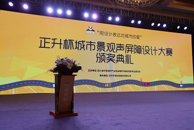 頒獎典禮現(xiàn)場,四川省環(huán)境保護宣教處副處長兼宣教中心主任曹小佳、四川省環(huán)境保護產(chǎn)業(yè)協(xié)會副會長邵志軍、正升環(huán)境科技股份有限公司董事長分別致辭。曹小佳表示“正升杯”城市景觀聲屏障設(shè)計大賽的開展,帶給成都乃至四川新的道路聲屏障思路及感悟,同時為政府今后開展噪聲污染防治工作提供了更多的方案,為政府和企業(yè)合力治理城市聲環(huán)境搭建了良好的平臺。李朝陽董事長則表達了對未來道路噪聲治理的期許,即“城市大道,靜美不言”。